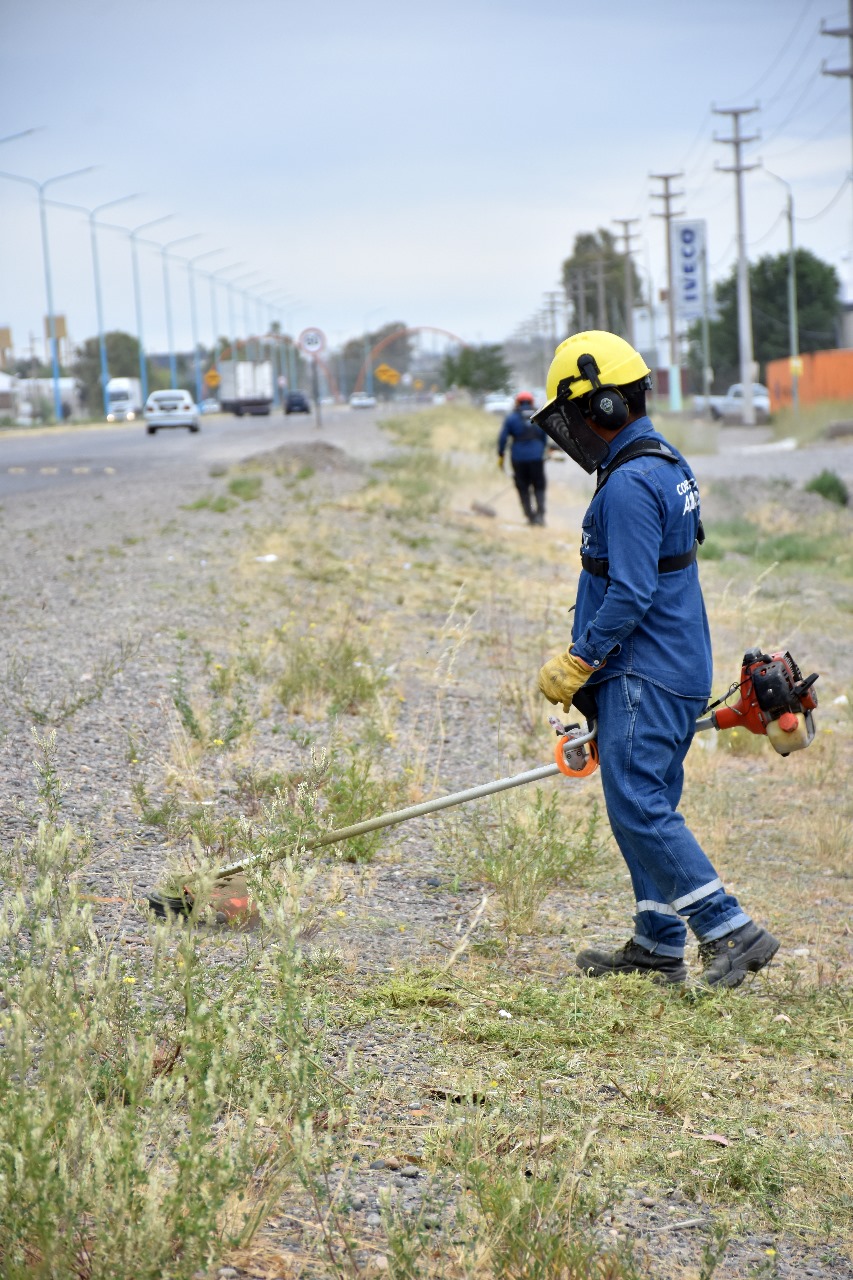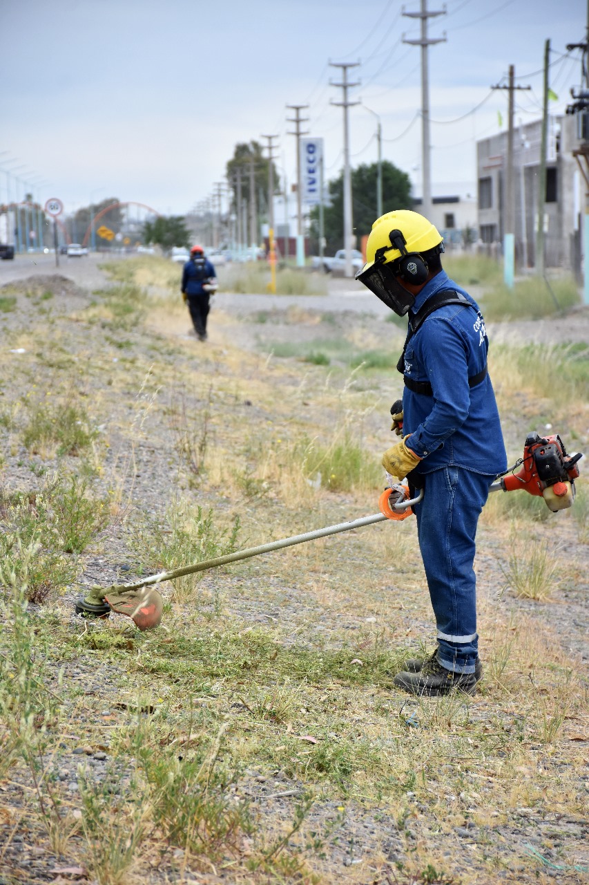 El Municipio refuerza el desmalezamiento en la avenida Eva Perón.