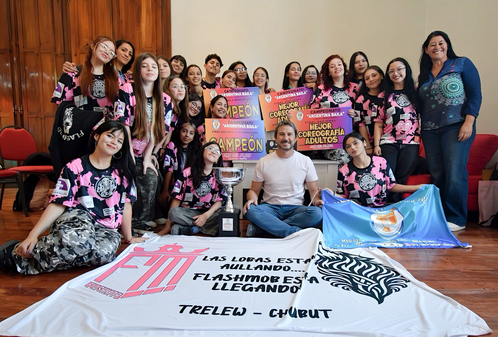 Integrantes de la Academia de Danzas Urbanas Flashmob fueron recibidos por el intendente Gerardo Merino, con quien compartieron la alegría de los logros obtenidos en las finales nacionales de Freedance y Reggaeton en el Campeonato Argentina Baila, realizado en Mar del Plata, logrando por tercer año consecutivo en quedarse con el podio.