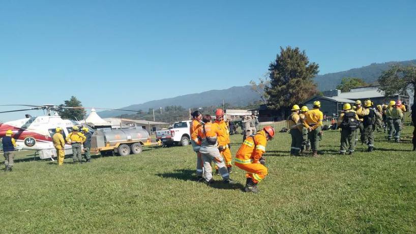 Once combatientes del Servicio Provincial de Manejo del Fuego fueron transportados en helicóptero hacia la zona del incendio, partiendo desde el Parque Nacional Lago Puelo a las 9 horas.