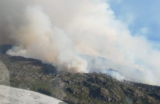 El fuego, detectado días atrás, consumió hasta el momento vegetación seca y árboles caídos en una zona que fue afectada en 2015 por otro incendio, lo cual provoca humo.