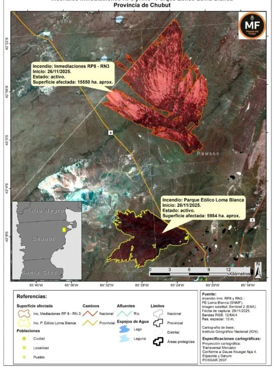 Los incendios registrados en campos cercanos a Trelew afectaron 21.534 hectáreas, equivalentes a 13 veces la superficie urbanizada de la ciudad (1.600 hectáreas), según los datos oficiales publicados por el municipio. La información se extrajo de ADNSUR.