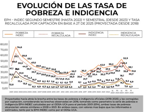 La publicación del nuevo dato oficial de pobreza reavivó el debate sobre su medición, luego de que la UCA advirtiera que la baja en la tasa reportada por el Indec responde más a factores técnico metodológicos que a una mejora real pronunciada. El Observatorio de la Deuda Social (ODSA-UCA) de esa universidad no desconoce los avances pero sostuvo que los números sobre-representaron el alivio social.