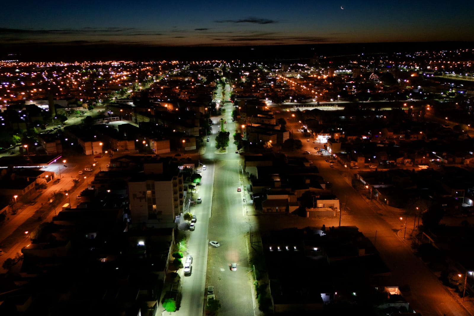 En el marco del convenio firmado con el gobernador Ignacio Torres respecto al plan de modernización y mejora del alumbrado público, la Cooperativa de Servicios Públicos de Rawson llevó adelante el recambio de luminarias en la avenida Sarmiento, una de las arterias principales de la ciudad donde también se encuentra la plaza Güemes.