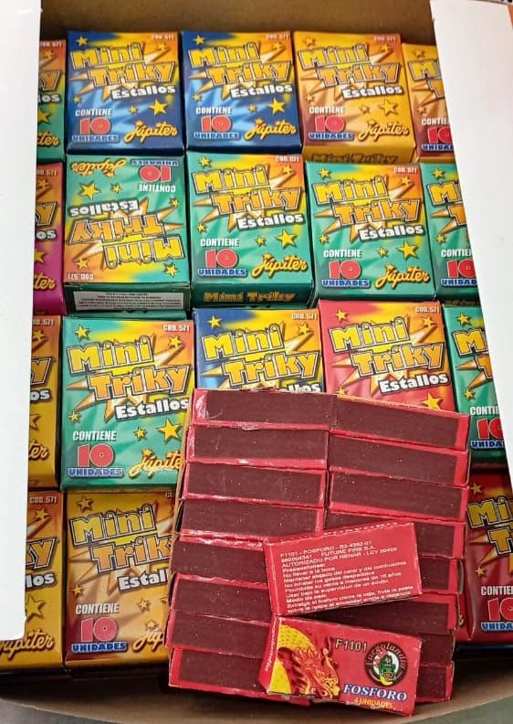 Simultáneamente en Trelew y Rawson, la División Explosivos de la Policía del Chubut incautó diversos artículos en varios locales comerciales.