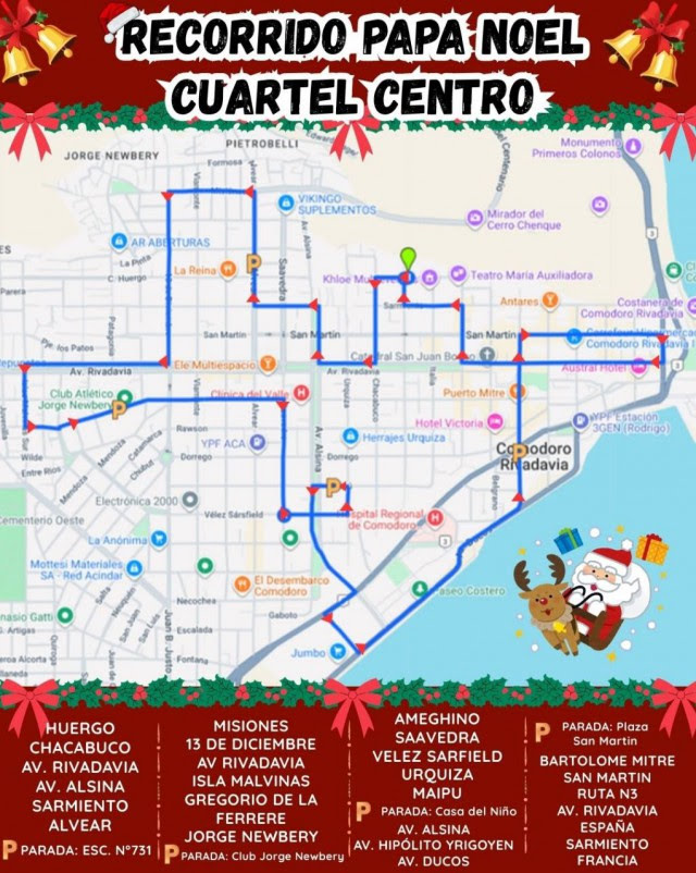 El cuartel centro de Comodoro Rivadavia anunció el recorrido especial de Papá Noel, que se realizará este martes a partir de las 18 horas, visitando diversos barrios y puntos estratégicos de la ciudad.