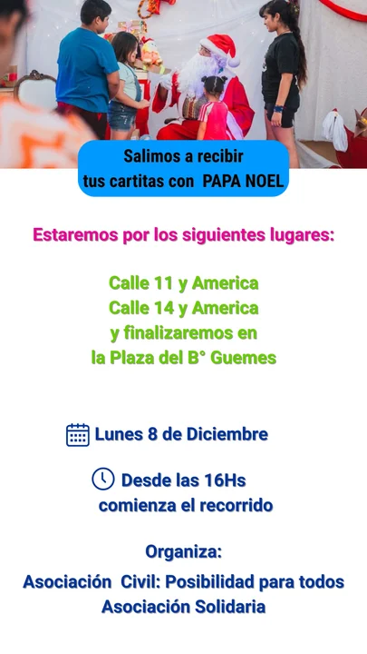 La magia de la Navidad se adelanta en Rawson con una conmovedora iniciativa solidaria. La asociación «Posibilidad Para Todos», en conjunto con una Asociación Civil, ha organizado una caravana especial con Papá Noel para recolectar las cartas de los niños y llevar un espíritu festivo a la comunidad.
