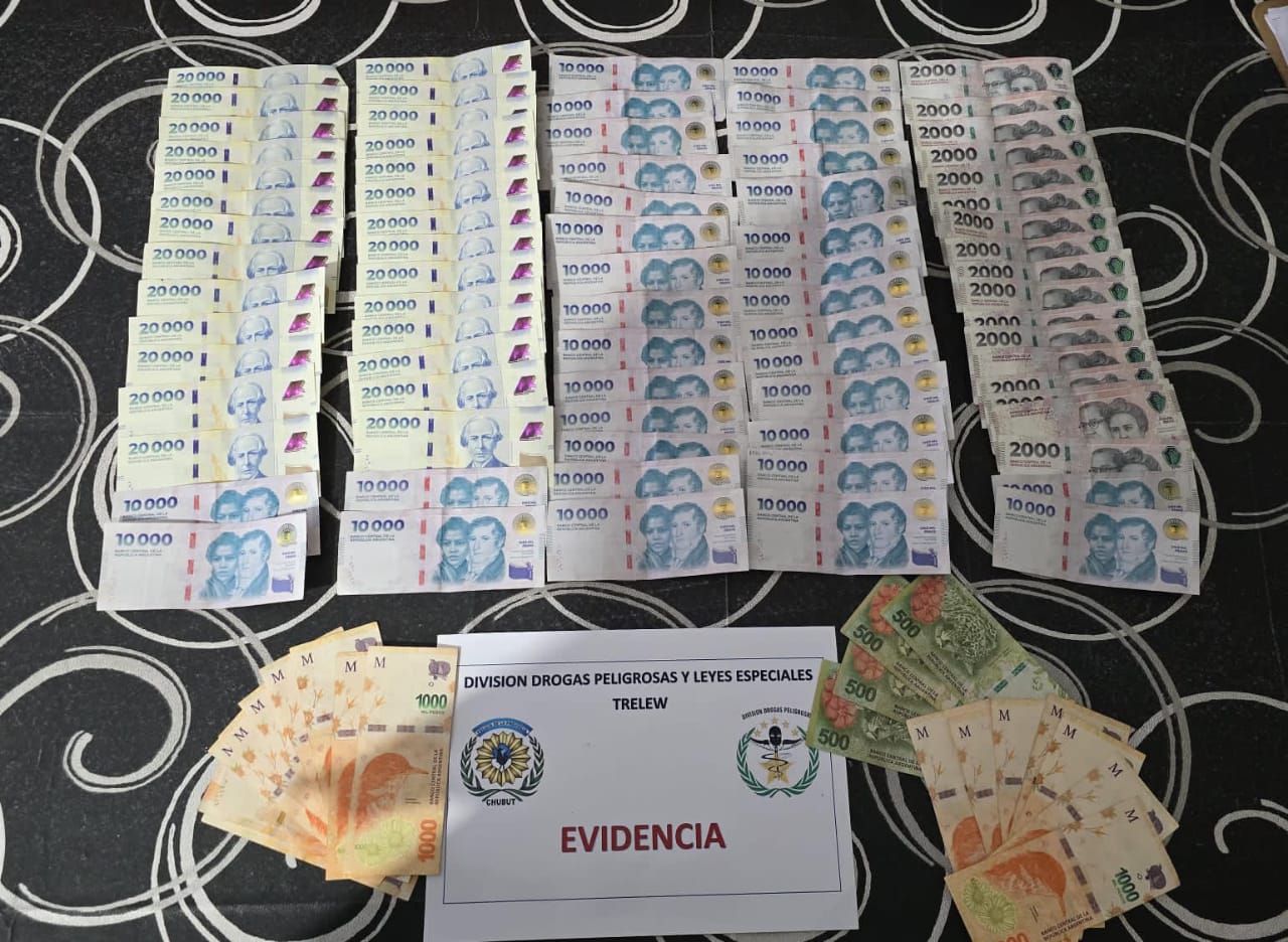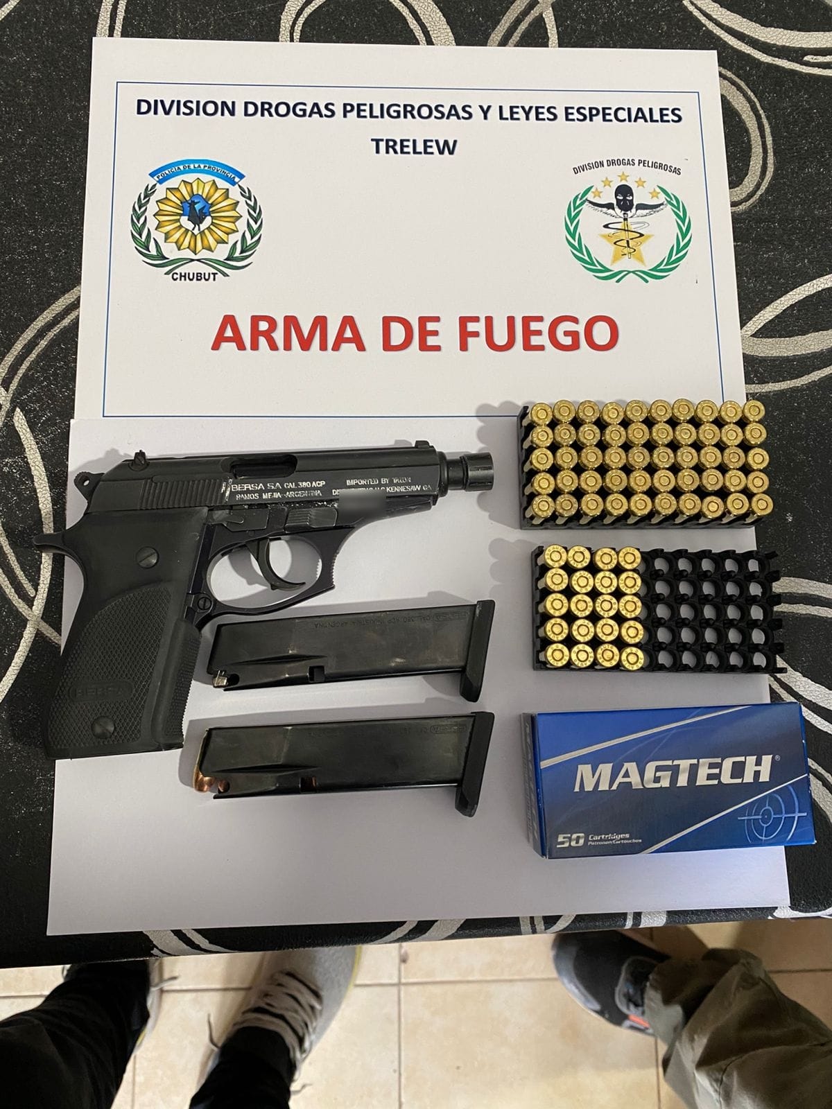 De modo simultáneo – a raíz de una denuncia anónima – la División Drogas y Leyes Especiales de Trelew efectuó un allanamiento en una vivienda particular donde se incautaron un pan de cocaína, un arma de fuego, envoltorios fraccionados, una balanza digital y cerca de un millón de pesos en efectivo.