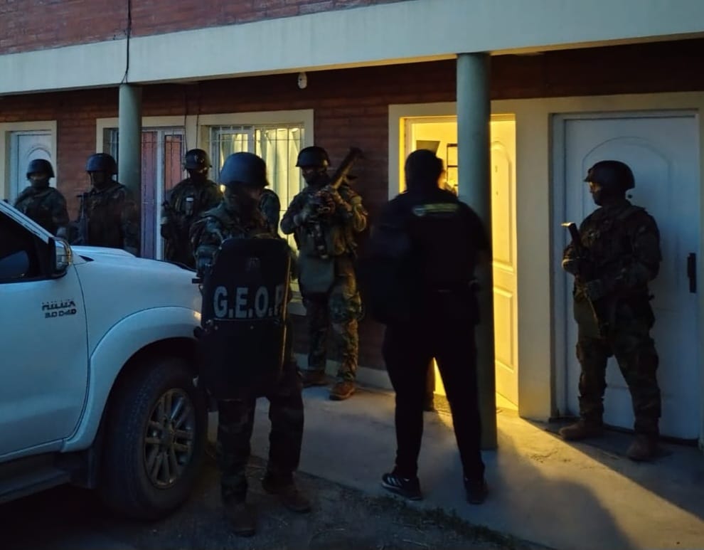 En Puerto Madryn, la investigación de la Policía del Chubut – bajo la supervisión del Ministerio Público Fiscal- se llevó adelante por el lapso de dos meses y culminó con cinco allanamientos en los que se detuvo a cuatro personas, se incautó medio kilo de marihuana, tres armas de fuego, balanzas de precisión y otros elementos de interés.