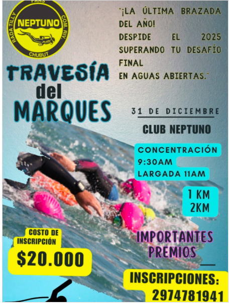 Desde el Club Neptuno invitan a la comunidad a sumarse bajo una consigna clara: cerrar el año superando un desafío personal en contacto con el mar. Las inscripciones ya están abiertas y quienes deseen participar pueden comunicarse al 297 4781941 para obtener más información y asegurar su lugar.