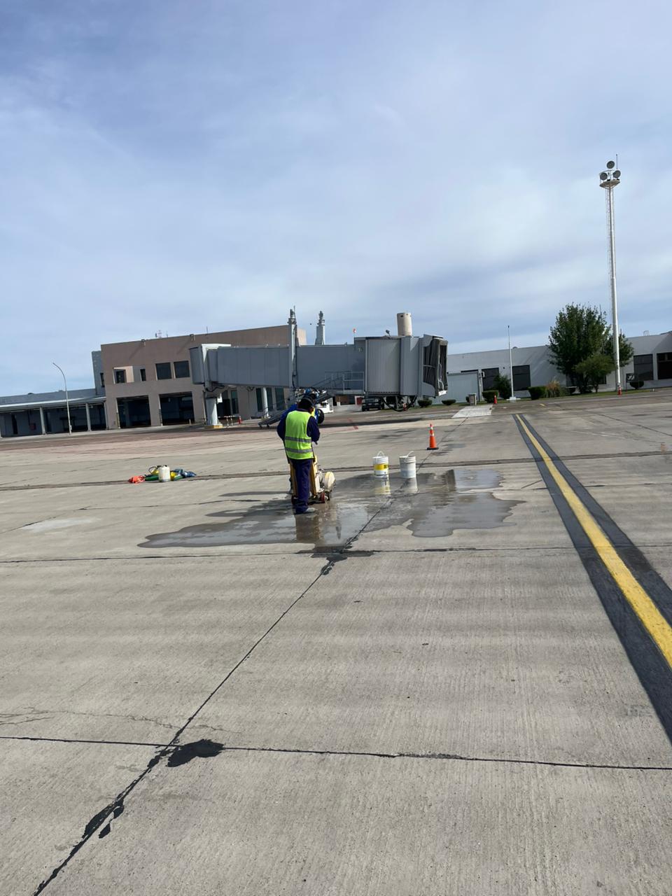 La Municipalidad de Trelew inició una obra clave para el mantenimiento y la seguridad operacional del aeropuerto Almirante Marcos A. Zar: la reparación de la plataforma en las posiciones 1, 2 y 3, utilizadas para el estacionamiento y maniobra de aeronaves.