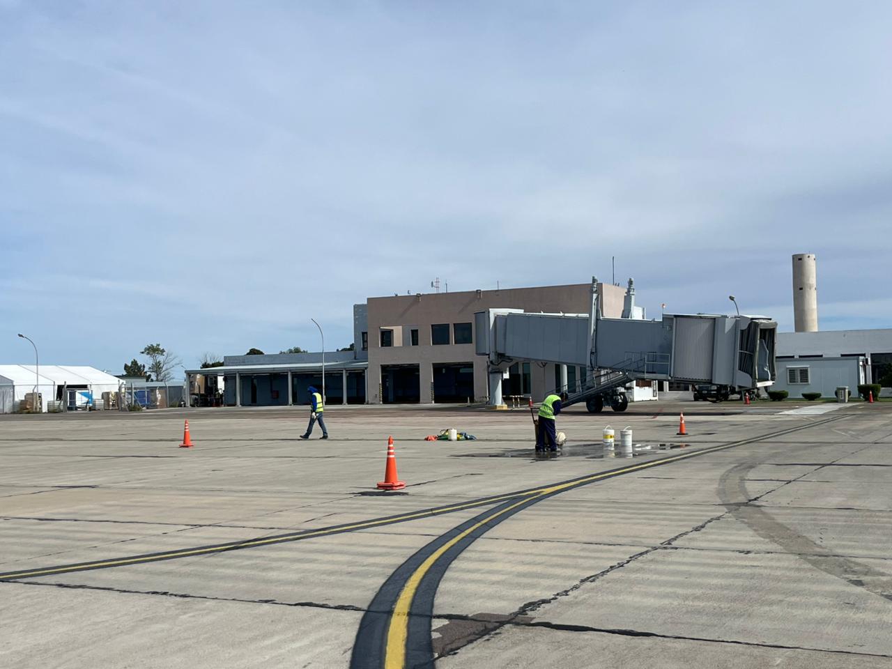 El director de Aeropuerto, Fabio Orellano, explicó que actualmente se trabaja en la posición 1, la única que posee manga, por lo que se encuentra momentáneamente fuera de uso. “Los trabajos que se están realizando son tareas de bacheo en la plataforma, todo dentro de los protocolos de seguridad operacional que requieren las aeronaves que operan acá”, detalló.