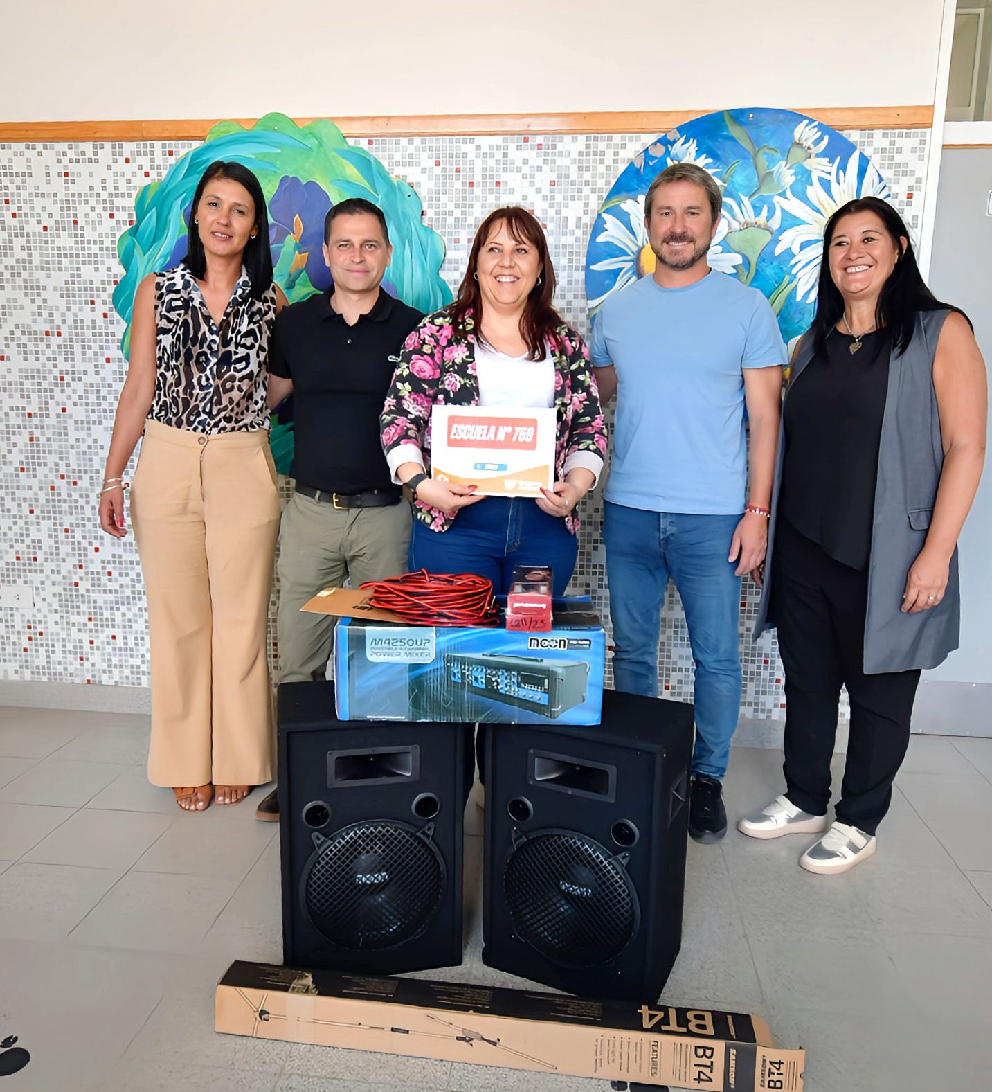 Las entregas se realizaron a los directivos de los establecimientos escolares. La Escuela N° 21, recibió un freezer y un Smart TV; la Escuela N° 759, un equipo de sonido y micrófono; la Cooperativa “Venciendo Barreras”, una máquina de coser industrial; y la Cooperativa Meta Ser, un parlante portátil. Asimismo, en el Jardín N.° 431, Lotería del Chubut entregó una cocina y un proyector