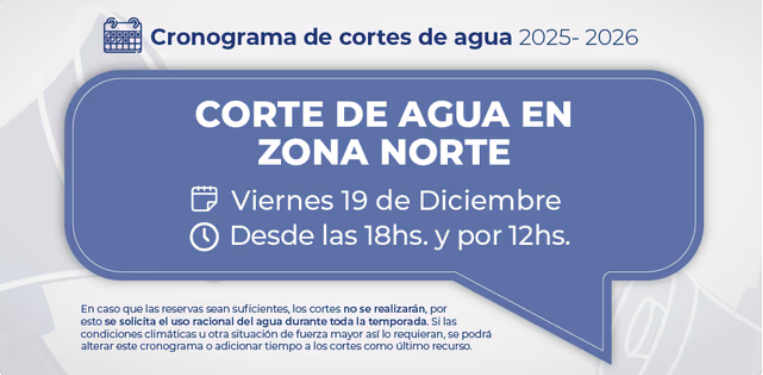 Durante los meses de verano, el uso del agua se incrementa significativamente por tareas como riego, llenado de piletas, lavado de vehículos y mayor consumo domiciliario. Esta demanda supera la capacidad de recuperación de las reservas, lo que obliga a implementar cortes programados para equilibrar el sistema.