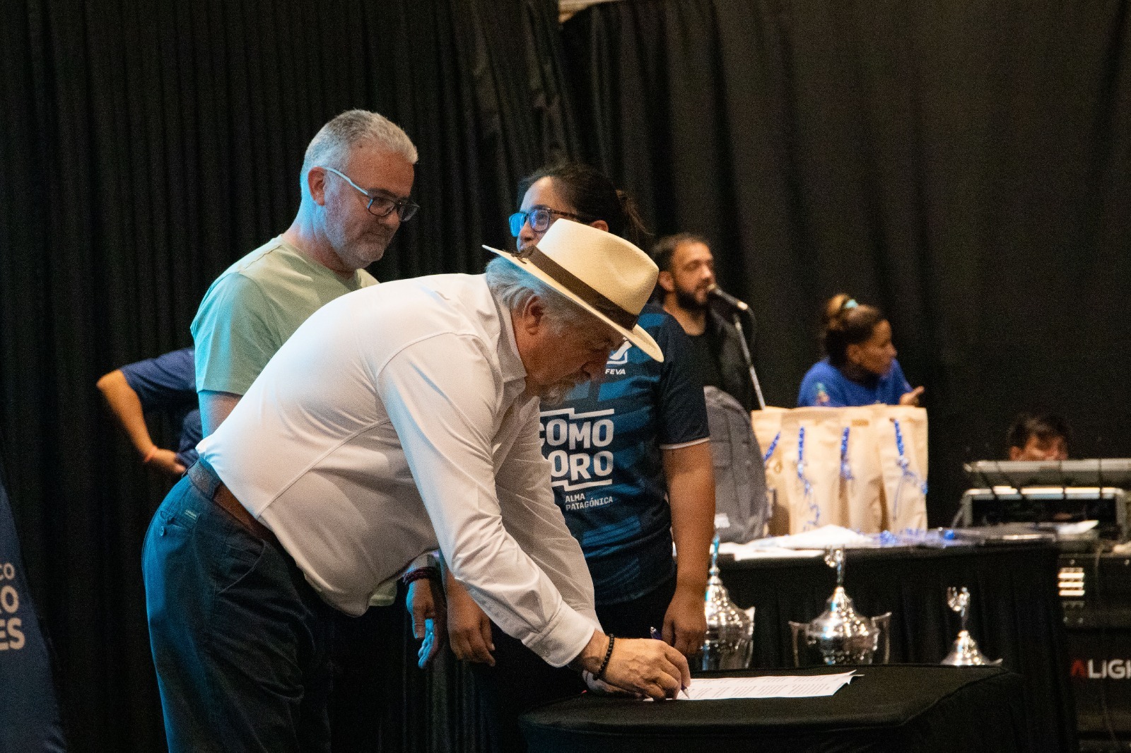 Estuvo presente el intendente Othar Macharashvili; junto con el presidente de Comodoro Deportes, Hernán Martínez; el presidente de la FeVA, Juan Sardo; el director ejecutivo de la Confederación Sudamericana de Voleibol, Marcelo Wrangler, y la presidente de la Federación Chubutense de Voleibol, María Eugenia Rodríguez.