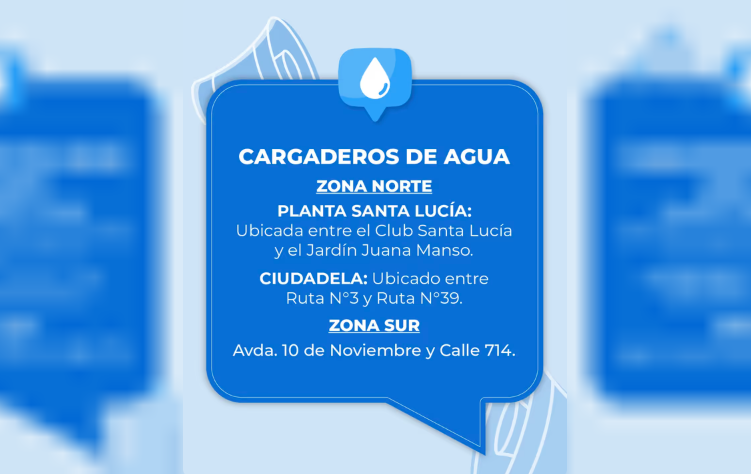 Para mitigar el impacto de la falta de servicio, se han habilitado tres cargaderos de agua potable en puntos estratégicos. En la zona norte, los vecinos pueden acudir a la Planta Santa Lucía y al punto ubicado en el barrio Ciudadela.