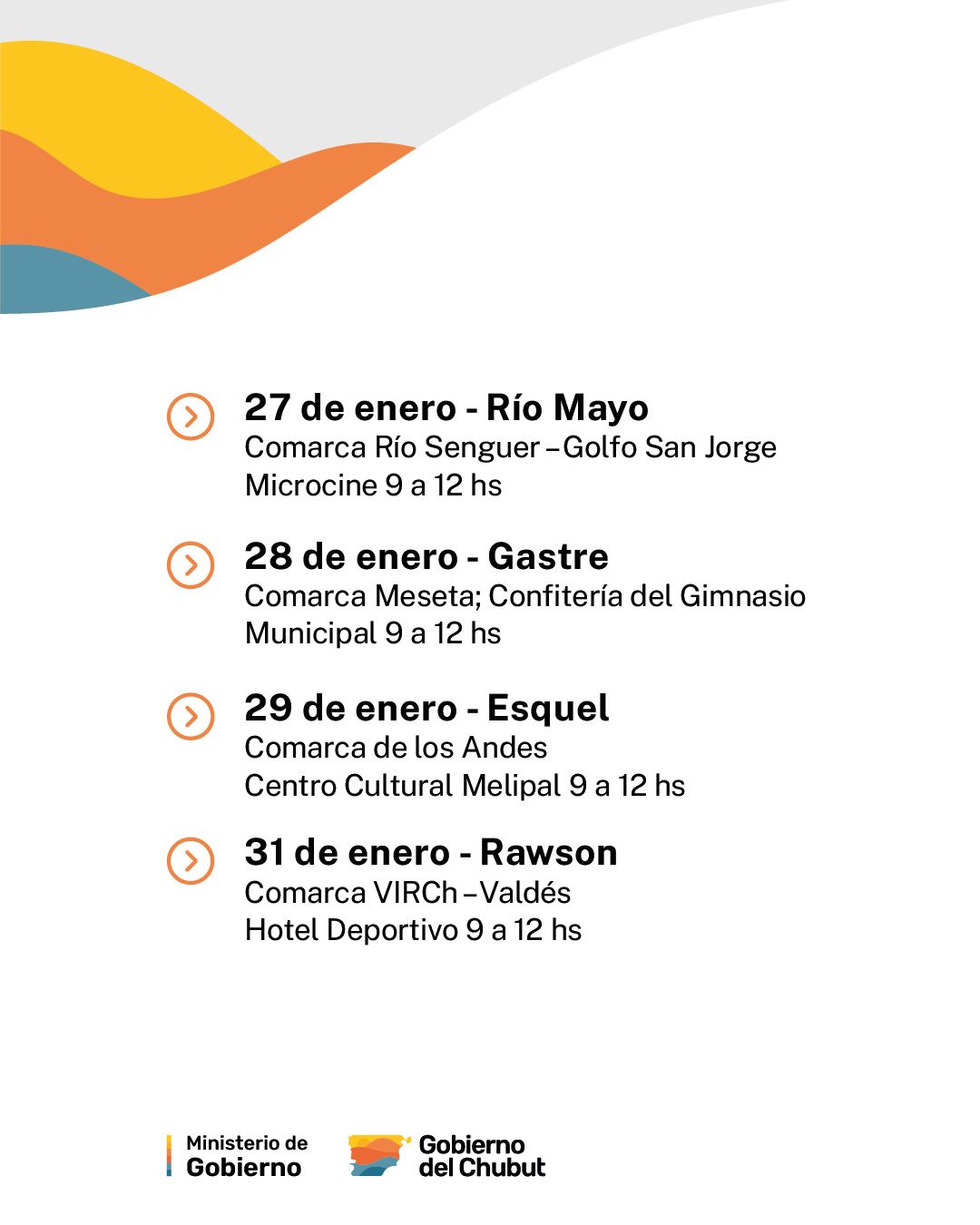 Las jornadas se desarrollarán a partir del 27 de enero en Río Mayo, Gastre, Esquel y Rawson.