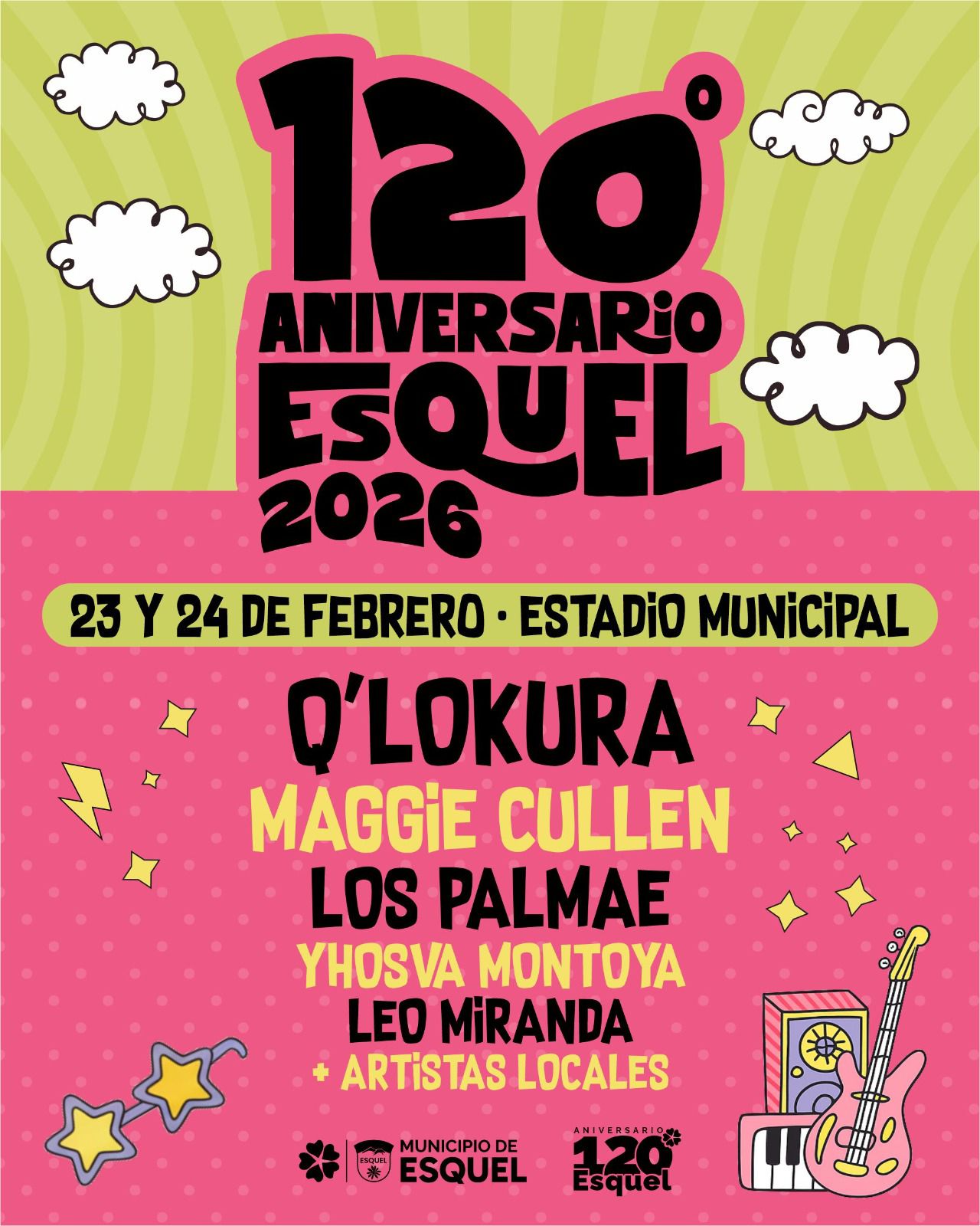 En cuanto a los espectáculos musicales, el cronograma de artistas nacionales incluye para el 24 de febrero la presentación de Q’Lokura y Los Palmae, en una noche central que también contará con el Telebingo, mientras que el 23 de febrero será el turno de Maggie Cullen, Yhosva Montoya y Leo Miranda; todos los shows se desarrollarán en el Estadio Municipal.