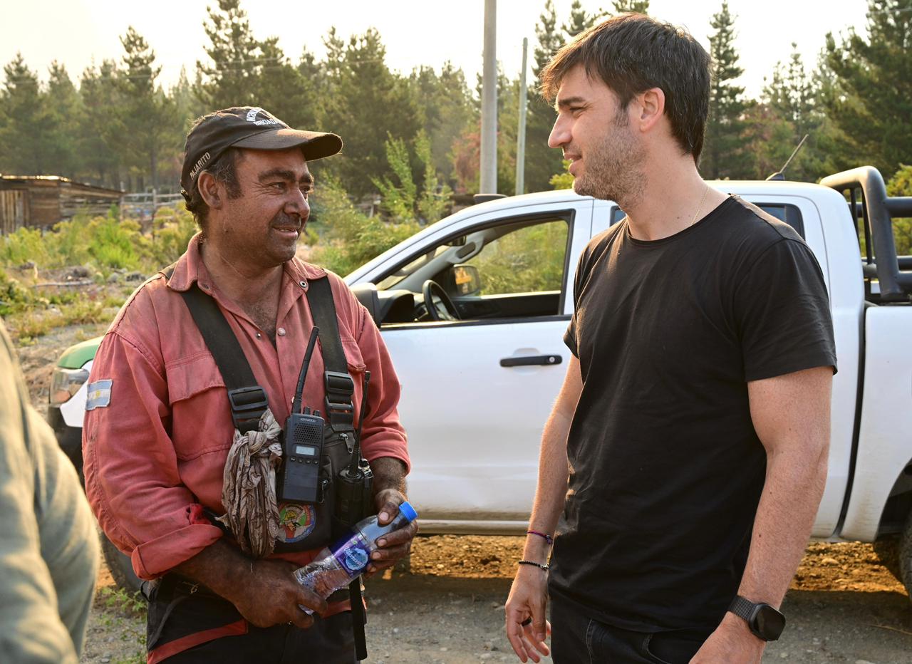 El gobernador del Chubut, Ignacio “Nacho” Torres, junto a funcionarios del Gabinete provincial y los intendentes de Epuyén y El Hoyo, José Contreras y César Salamín, encabezó una recorrida por los distintos sectores de la cordillera afectados por los incendios, donde dialogó con vecinos y relevó las necesidades de los damnificados.