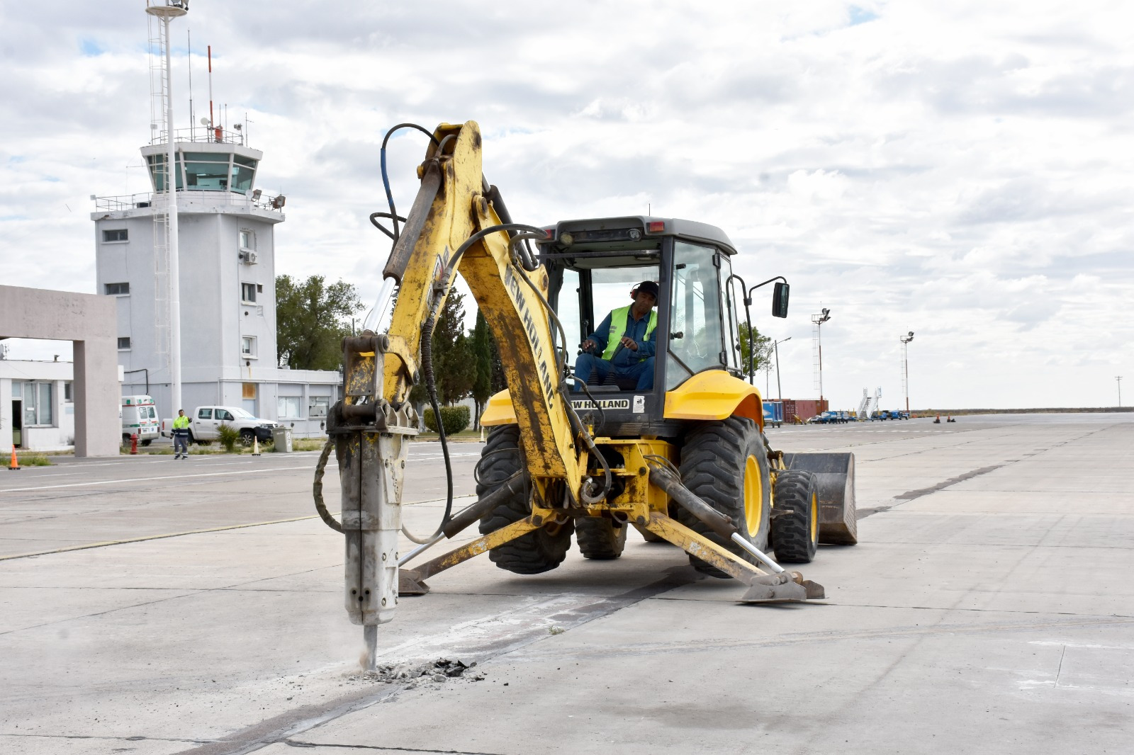 La Municipalidad refuerza la infraestructura del aeropuerto con trabajos programados en la plataforma.