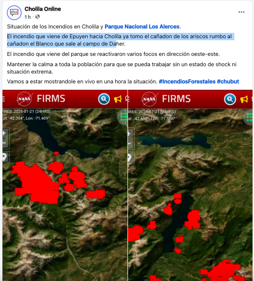 Situación de los incendios en Cholila y Parque Nacional Los Alerces.