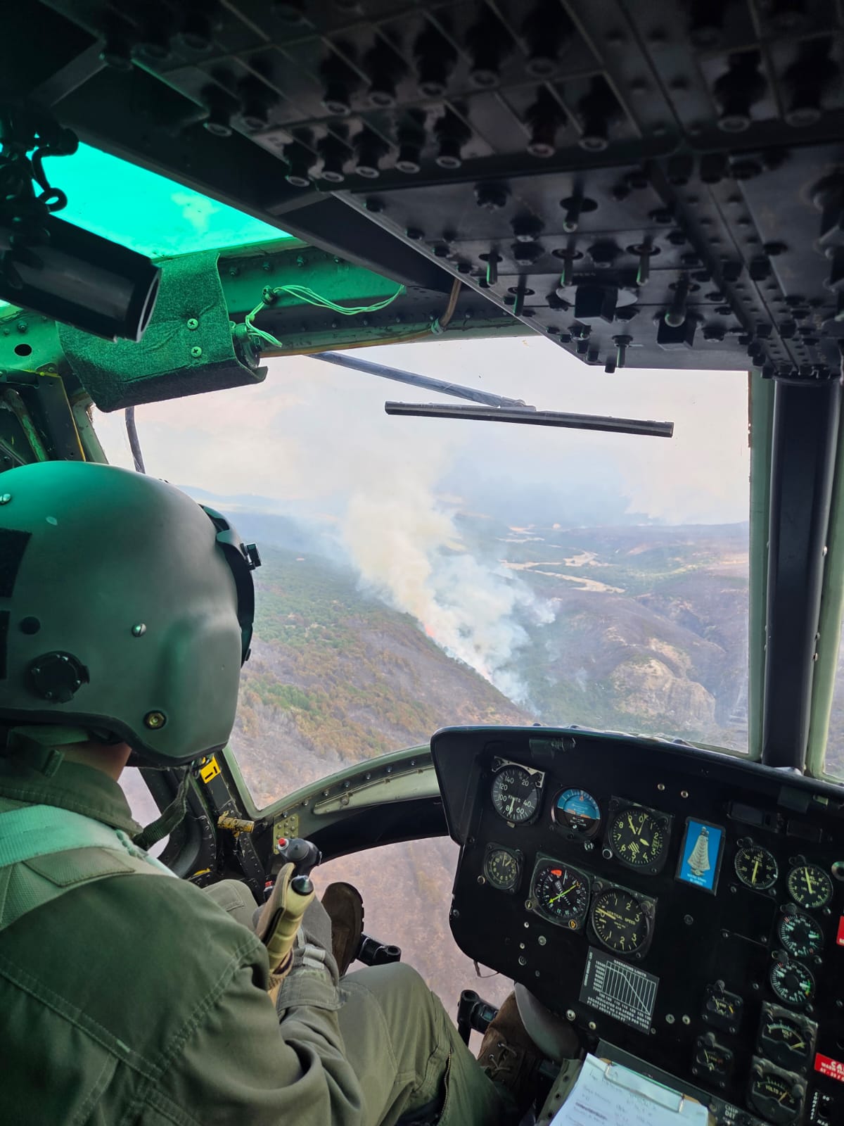 Durante la jornada del sábado se realizaron sobrevuelos de detección y observación de puntos calientes en distintos sectores. Entre los medios aéreos operaron un helicóptero con helibalde y dos aviones hidrantes provenientes de la AFE. Además, desde ayer se encuentra operativo en la base establecida en Villa Futalaufquen el helicóptero del Ejército Argentino (EA) destinado altraslado de herramientas y personal de terreno, al que hoy se sumarán dos helicópteros EA con helibalde.