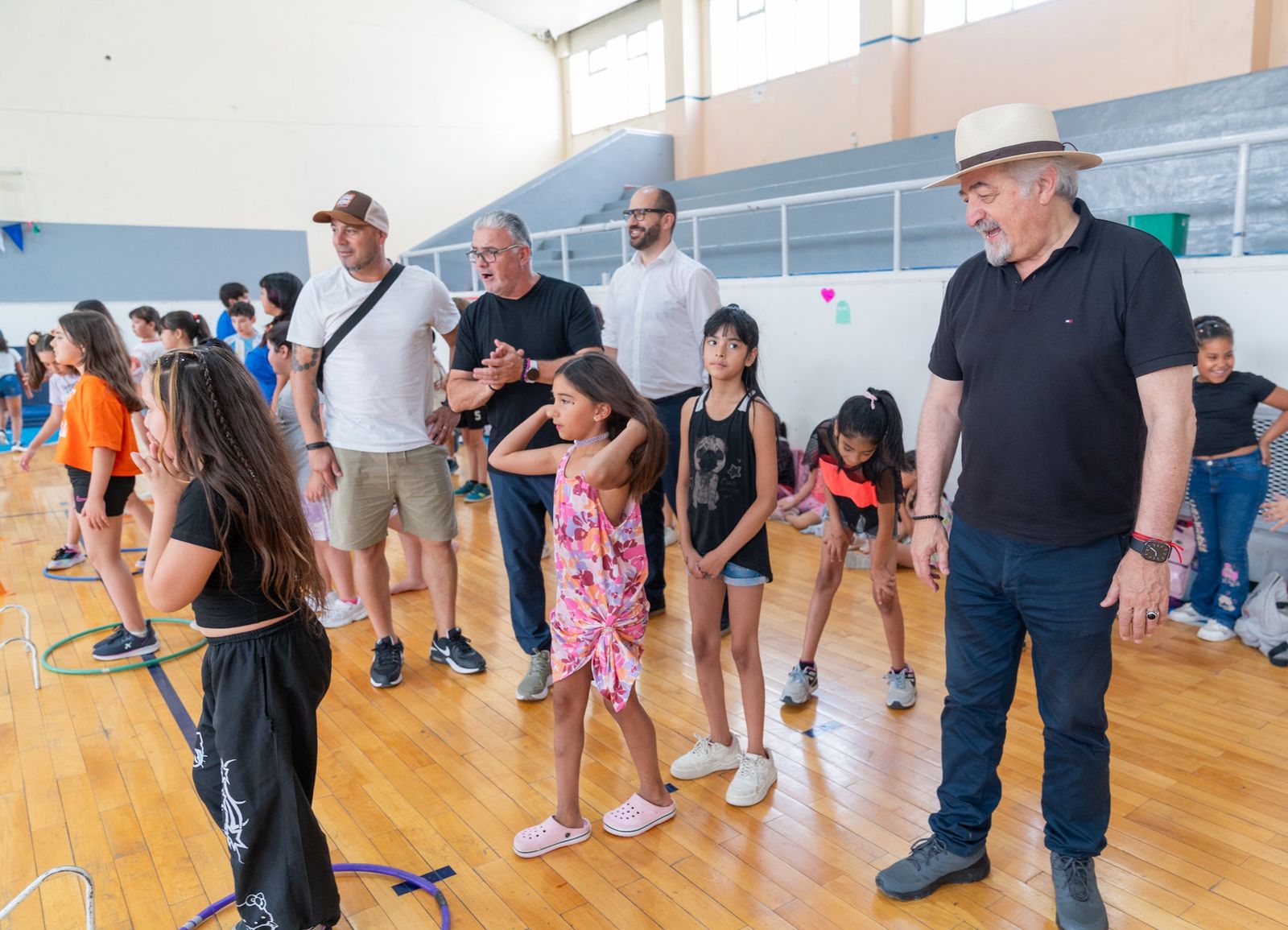 En el marco de una nueva recorrida por distintas sedes de las Colonias de Verano 2026, el intendente Othar Macharashvili; junto al presidente de Comodoro Deportes, Hernán Martínez; el secretario de Desarrollo Humano y Familia, Ángel Rivas; y el concejal Ariel Montenegro; visitaron los gimnasios municipales N° 1 y N° 3, ubicados en la zona sur de la ciudad, donde niños y niñas participan de las actividades recreativas impulsadas por el Estado Municipal.