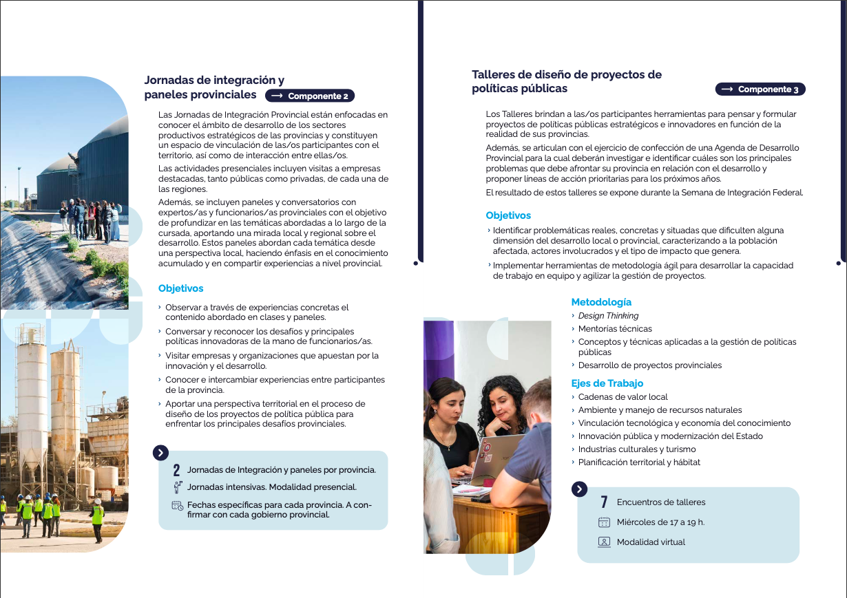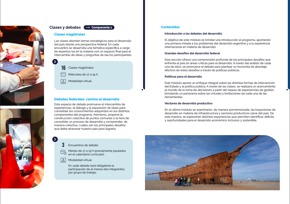 La formación contempla clases magistrales sobre infraestructura, logística, estructura productiva argentina y políticas de desarrollo, paneles provinciales enfocados en la realidad local, jornadas de integración con visitas a empresas públicas y privadas, y talleres de diseño de proyectos de políticas públicas innovadoras.