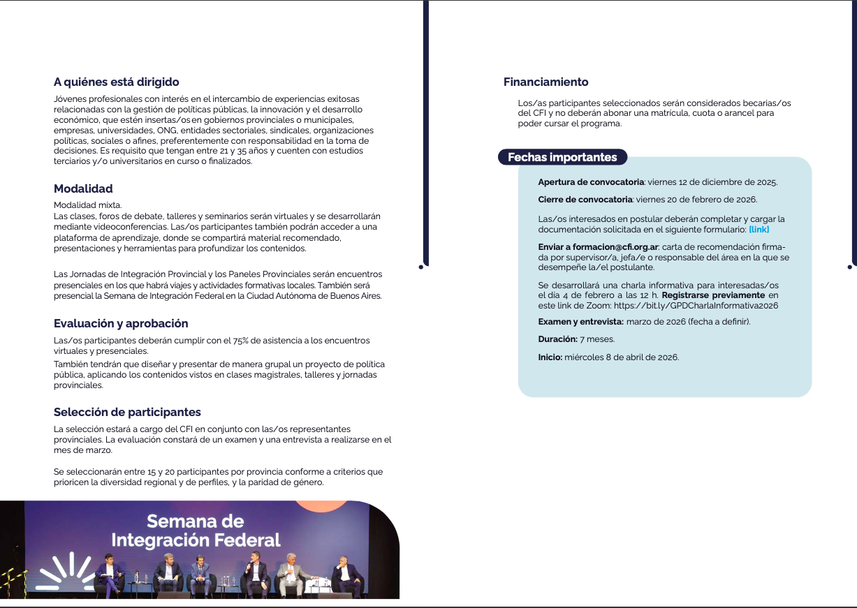 Durante 2026 el programa se llevará adelante durante siete meses en forma simultánea en 23 provincias, e incluirá el Foro de Debate para la Construcción de un Desarrollo Federal, un espacio de intercambio y elaboración colectiva de agendas de desarrollo provinciales y nacional.