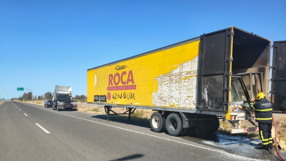 El tráiler de un camión que transportaba materiales de construcción para una vivienda prefabricada se incendió mientras viajaba, y de milagro, dos trabajadores que iban ilegalmente dentro del mismo lograron ser rescatados. Los tres ocupantes del vehículo sufrieron inhalación de humo y fueron trasladados al Hospital Zonal de Trelew. Según Jornada.