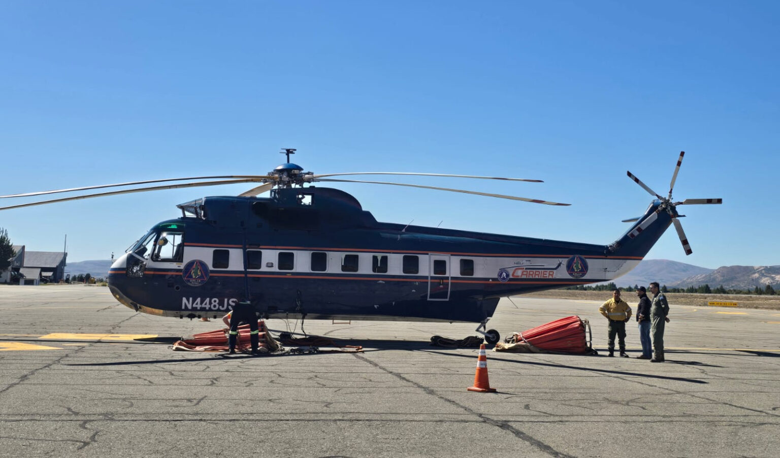 Desde el área operativa explicaron que cada descarga del helicóptero rionegrino equivale a más de cuatro disparos de un helicóptero estándar. Mientras una aeronave tradicional puede arrojar unos 9.000 litros en diez ciclos, el helicóptero pesado alcanza cerca de 40.000 litros en el mismo tiempo.
