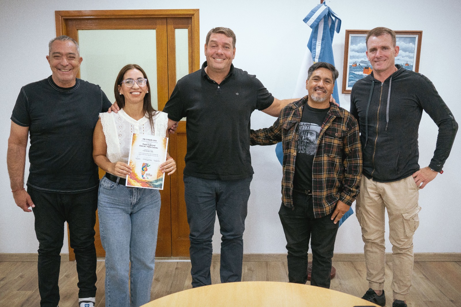 Estuvieron presentes el secretario de Educación, Cultura y Recreación, Daniel Tamame, y el gerente de la Agencia de Desarrollo Económico de Rawson (ADER), Fernando Vosecky, en un marco de reconocimiento al recorrido artístico y al trabajo sostenido de los bailarines.