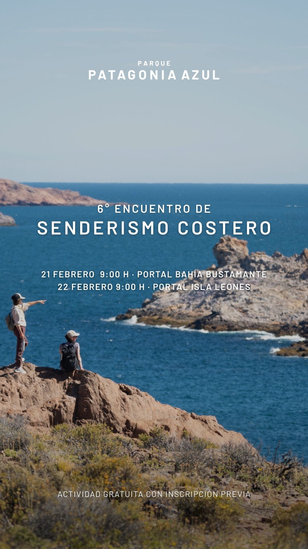 La actividad continuará el domingo 22 de febrero, en el Portal Isla Leones. El encuentro está pactado para las 9:00 horas en el Camping Bahía Arredondo. Desde allí se iniciará una caminata por el sendero del Cañadón de la Costa, un recorrido que permite apreciar la inmensidad del paisaje patagónico.