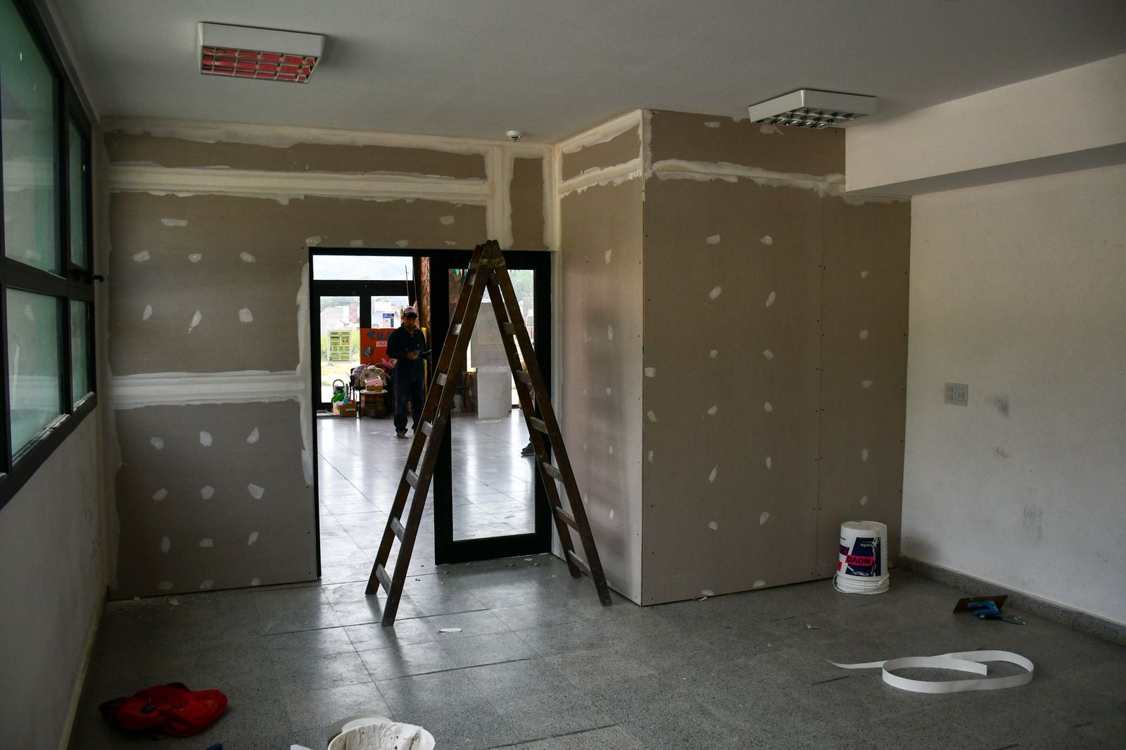 En esta etapa de la obra, se está llevando adelante la construcción de un nuevo hall de ingreso al natatorio, que permitirá ordenar y optimizar el acceso. Los trabajos incluyen la creación de nuevas puertas y el recambio de ventanas, para así generar un ingreso más funcional.