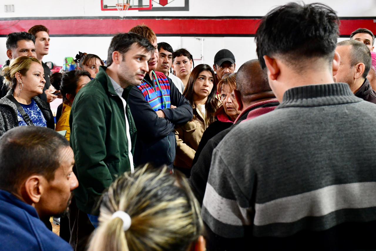 Durante su visita a la ciudad, el mandatario también mantuvo un encuentro con vecinos de los barrios Médanos y Sismográfica, damnificados por el derrumbe del Cerro Hermitte, y confirmó que se encuentra en análisis una serie de líneas de crédito complementarias a las 54 viviendas recientemente anunciadas, que serán financiadas y ejecutadas por la actual gestión.