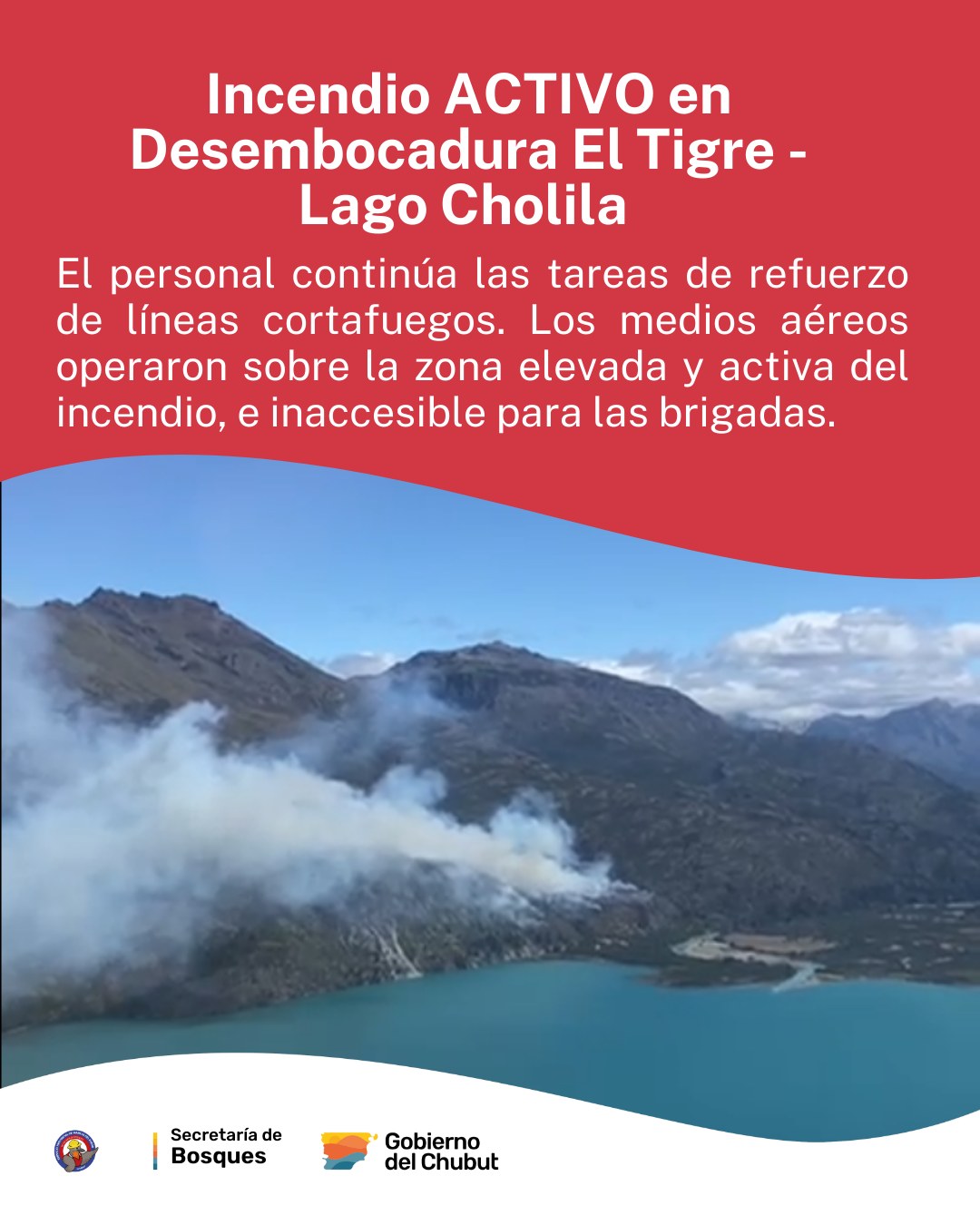 La situación ígnea en la zona de la Desembocadura del Río Tigre, en las inmediaciones del Lago Cholila, continúa siendo crítica y mantiene en vilo a las autoridades provinciales. A pesar del despliegue de brigadistas y medios aéreos, el incendio forestal permanece con actividad intensa, especialmente en sectores donde la geografía cordillerana impide el abordaje directo por tierra, complicando las tareas de contención.