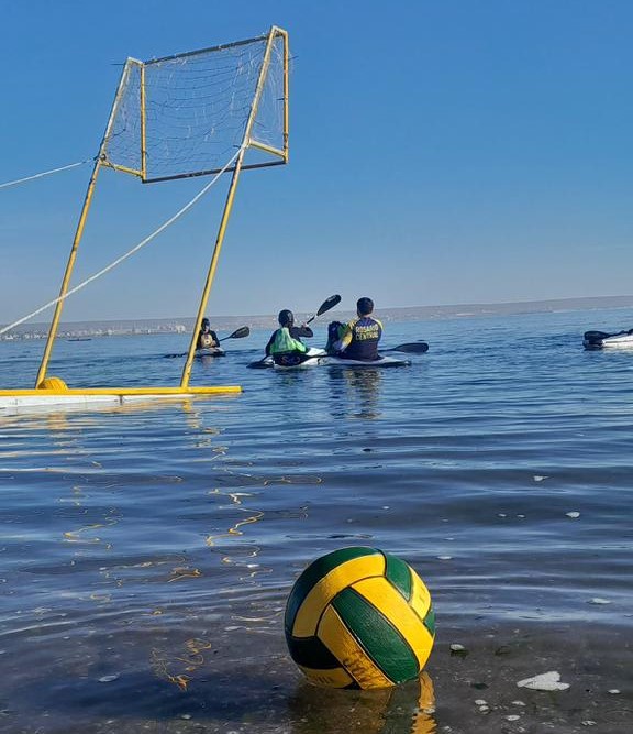La Escuela Náutica “El Potrero es el Mar”, impulsada por la Subsecretaría de Deportes de la Municipalidad de Puerto Madryn, incorpora a su grilla de propuestas el kayak polo.
