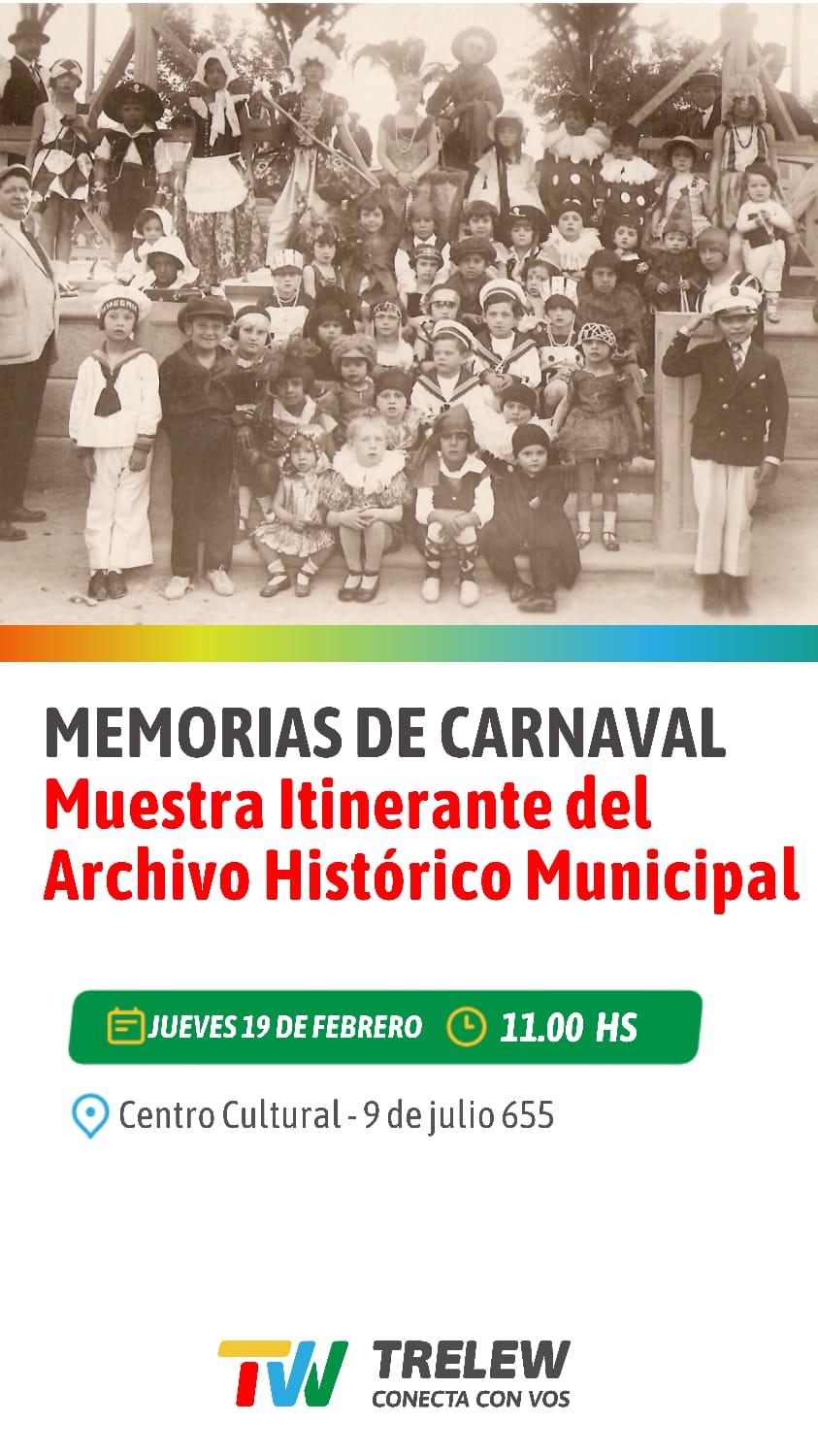 La muestra itinerante del Archivo Histórico Municipal de Trelew se inaugurará el jueves 19 de febrero a las 11 y reunirá fotografías que recuperan celebraciones populares de la ciudad.
