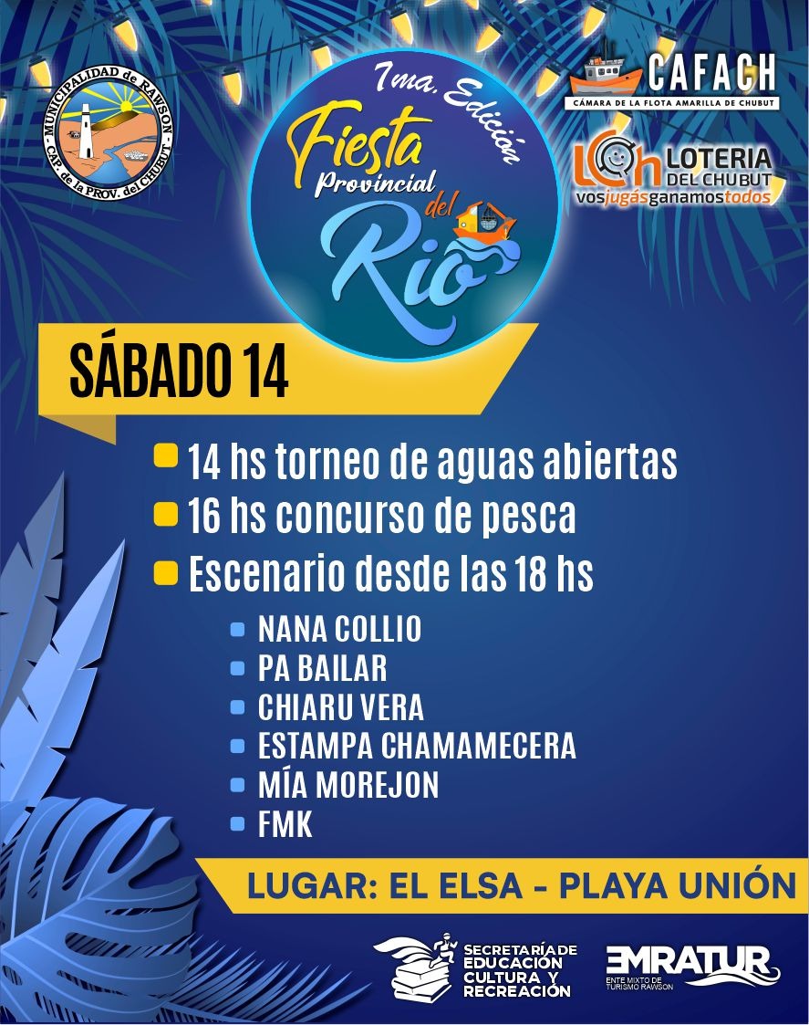 La Municipalidad de Rawson presentó la grilla completa de artistas y la programación de actividades de la séptima edición de la Fiesta Provincial del Río, que se realizará los días viernes 14 y sábado 15 de febrero en la zona de El Elsa, con acceso libre y gratuito, y una agenda que integra espectáculos nacionales, propuestas culturales, deportivas, recreativas y gastronómicas destinadas a vecinos, visitantes y turistas.