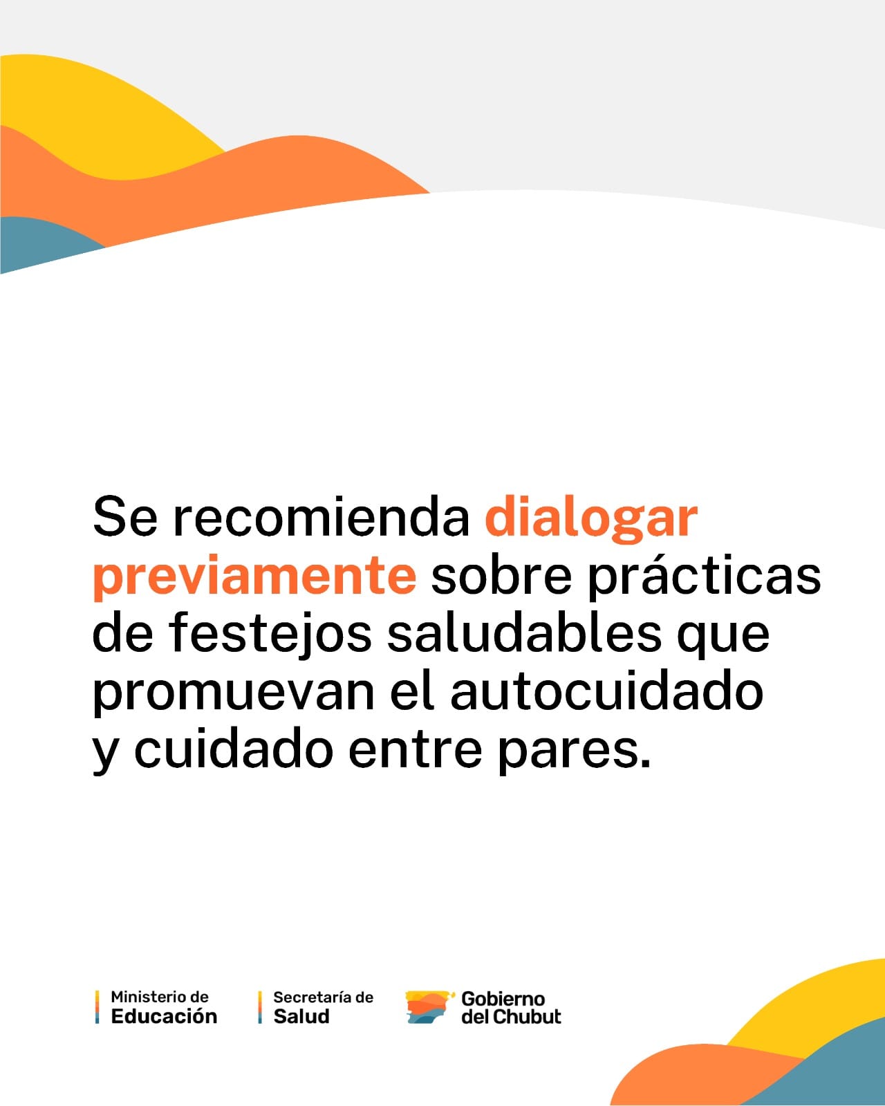Ante el inicio del ciclo lectivo 2026, que comenzó el lunes 23 de febrero, el Gobierno del Chubut, a través del Ministerio de Educación y la Secretaría de Salud, difundió una serie de recomendaciones para acompañar los festejos por el Último Primer Día (UPD), promoviendo el cuidado y la responsabilidad compartida.