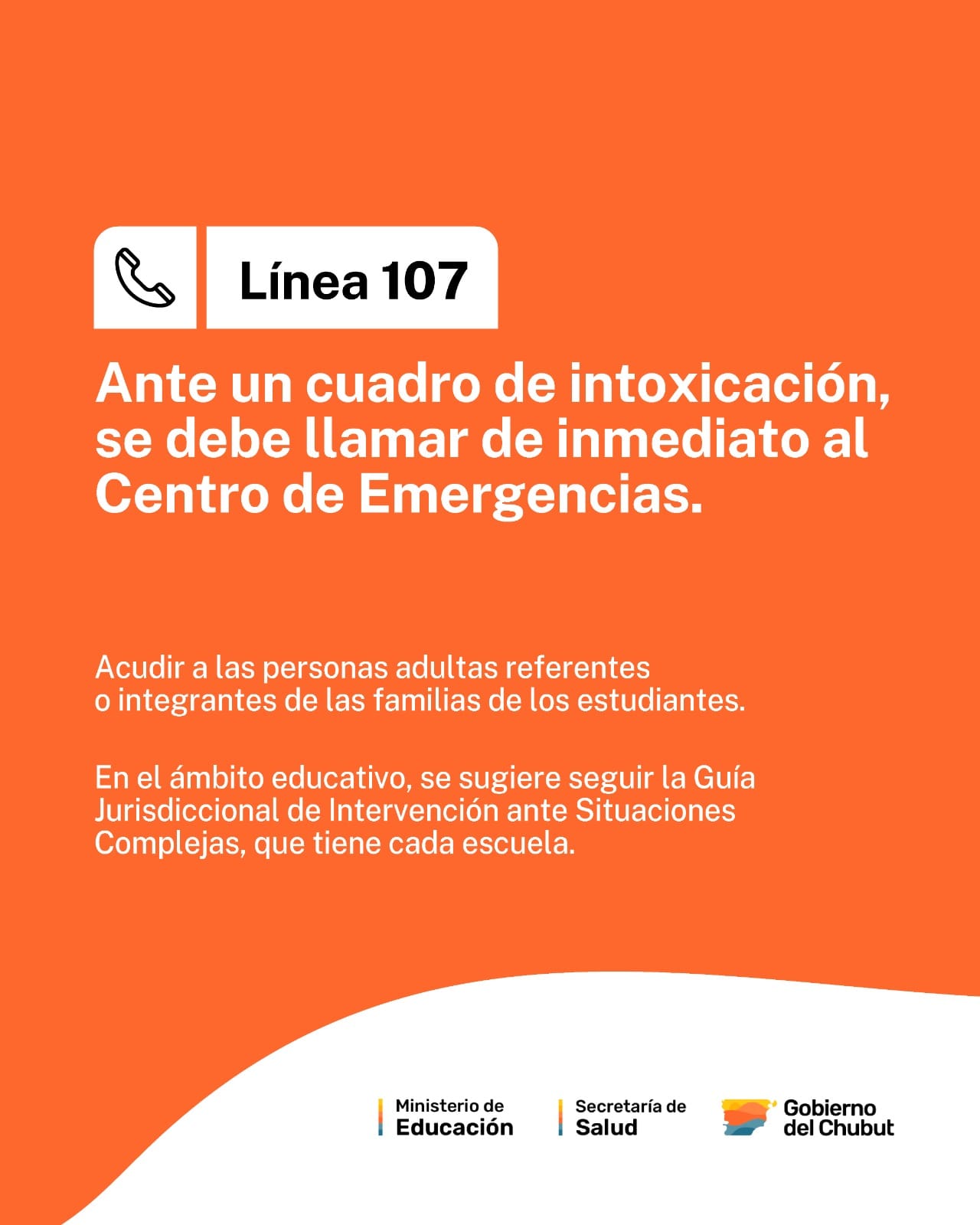 Ante un posible cuadro de intoxicación, se debe llamar de inmediato al servicio de emergencias médicas (107) y dar aviso a personas adultas referentes o integrantes de la familia para garantizar una intervención rápida y adecuada.