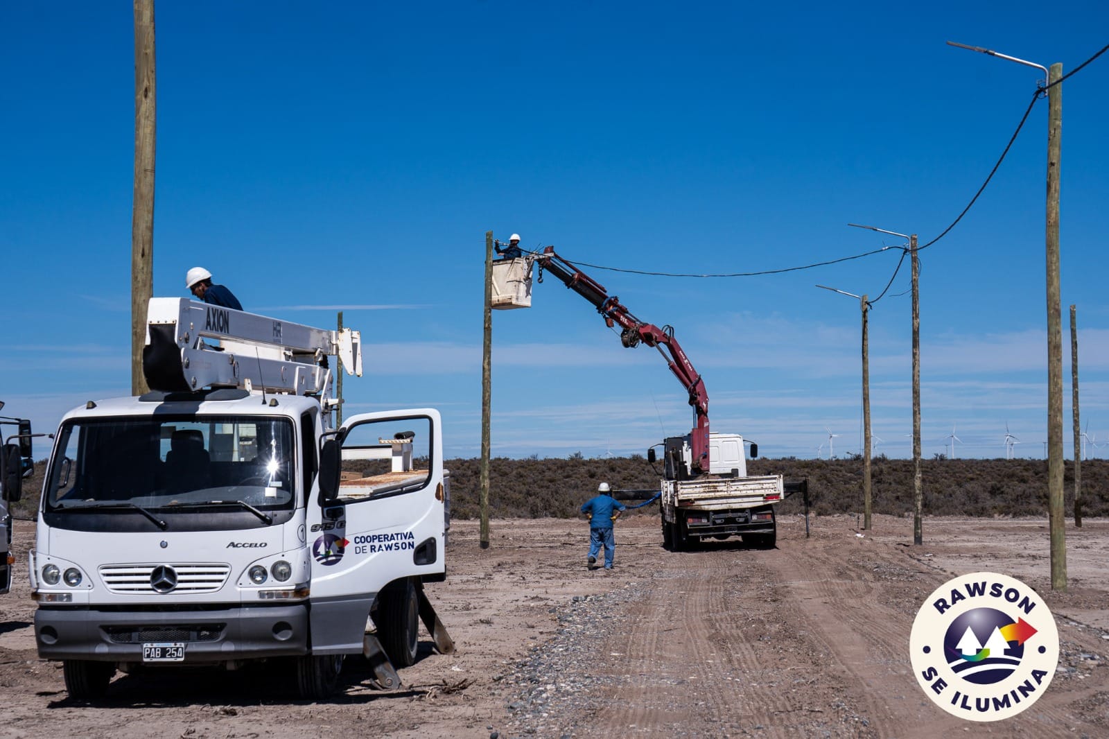 La Cooperativa de Servicios Públicos de Rawson continúa ejecutando importantes trabajos de infraestructura eléctrica en Lotear con el objetivo de avanzar en la consolidación de servicios para los futuros adjudicatarios en el marco de un trabajo mancomunado con la Municipalidad de Rawson.