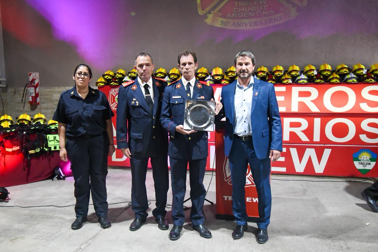 Durante el acto se destacó el medio siglo al servicio a la comunidad, el trabajo del cuerpo activo en emergencias recientes, la incorporación de nuevo equipamiento y el respaldo institucional que posibilitó recuperar el financiamiento del cuartel y fortalecer su funcionamiento. La Federación Chubutense de Asociaciones de Bomberos Voluntarios, reconoció especialmente el acompañamiento del Municipio de Trelew para superar la crisis y garantizar la continuidad del servicio.