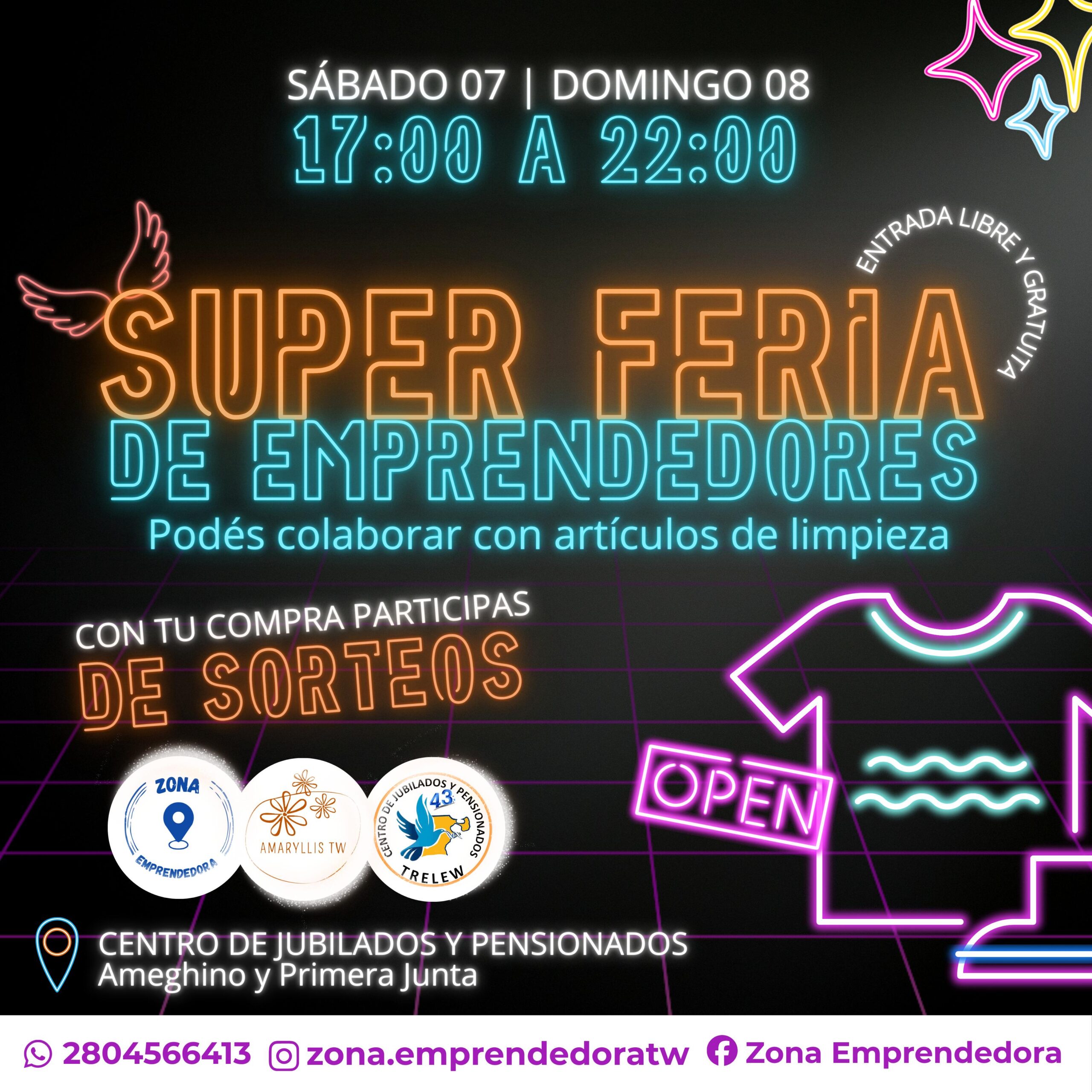 La Super Feria Emprendedores ya tiene su cuarta edición y será en el Centro de Jubilados, el ingreso será por Ameguino y Primera Junta. El evento se realizará el 7 y 8 de febrero, de 17 a 22 horas, y contará con gran variedad de puestos con productos de calidad y a precios accesibles.