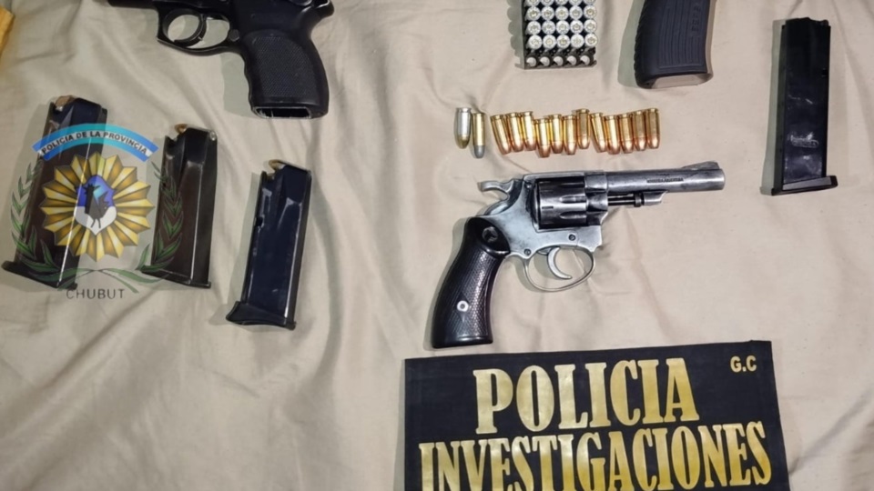 La División de Investigaciones de Trelew incautó pistolas Bersa, un revólver y más de 480 municiones de distintos calibres en el marco de causas por violencia de género que tramita el Ministerio Público Fiscal. Los operativos contaron con apoyo de Policía Científica y la Comisaría de la Mujer.