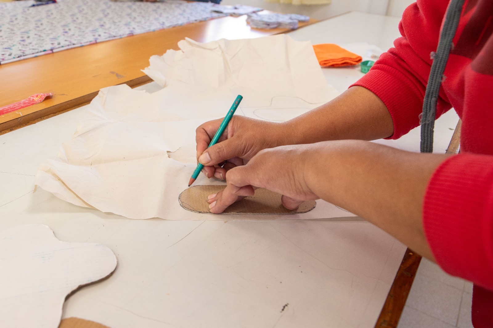 En abril, las operarias entregarán bolsitas sublimadas con carita de conejo a distintos Centros de Promoción Barriales (CPB), y en junio harán lo propio con escarapelas para los actos patrios. Para septiembre está prevista la confección de pecheras para docentes.