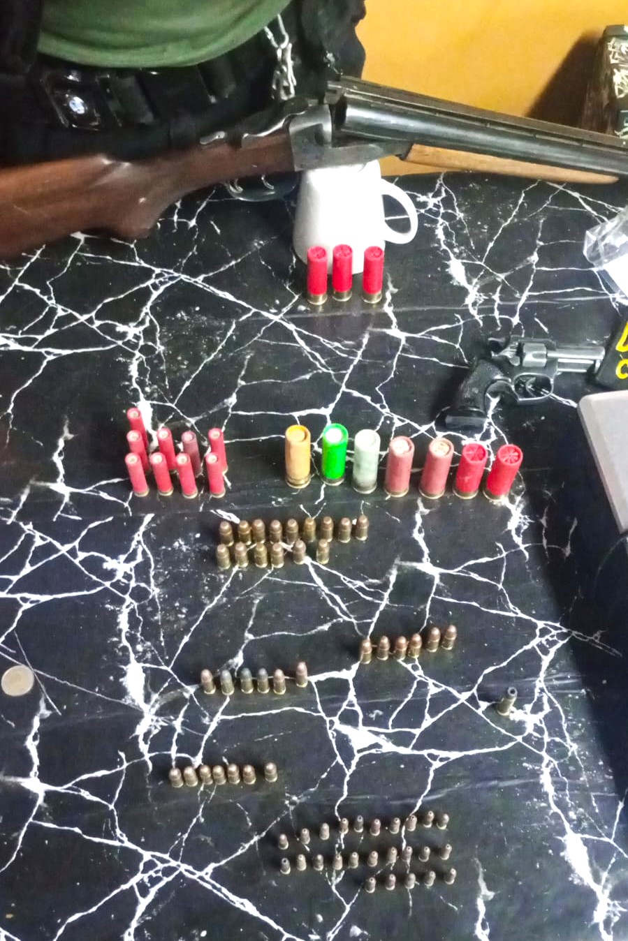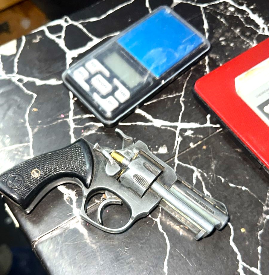 En total, se secuestraron una escopeta doble caño calibre 16, un revólver calibre 22 con municiones en su tambor, más de 70 proyectiles de diversos calibres, cinco balanzas digitales, dosis de cocaína y una máquina de envasado al vacío.