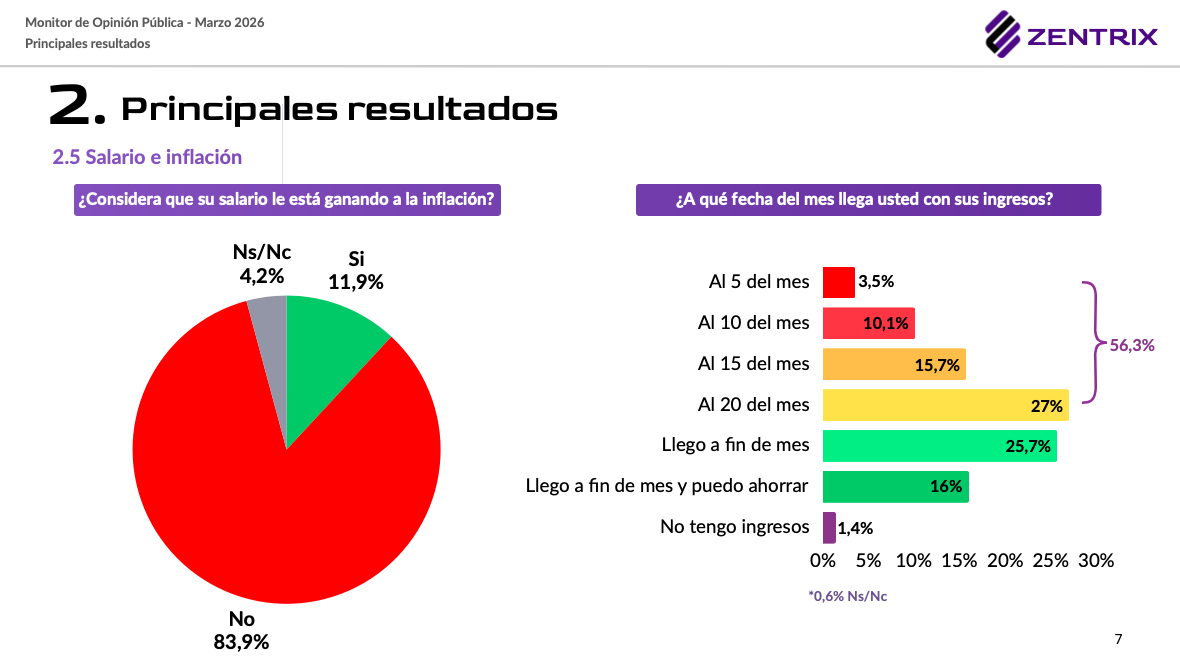 Dificultad para llegar a fin de mes: Un 56,3% de la población no logra cubrir sus gastos más allá del día 20 de cada mes.