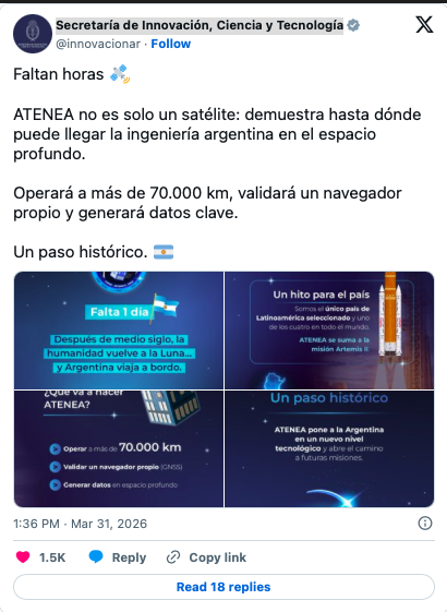 «ATENEA no es solo un desarrollo tecnológico; es una demostración de que la ciencia argentina puede competir y colaborar en las ligas mayores de la exploración espacial», señalaron fuentes de la Secretaría a la Agencia Noticias Argentinas.
