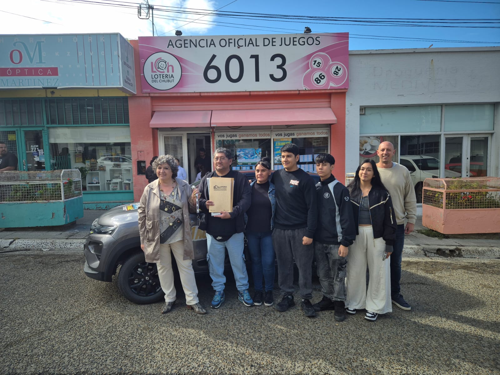 El cartón jugado en la agencia 6013, de Nancy Harris, en la ciudad petrolera, fue el que premió al afortunado jubilado. Millapán recibió el automóvil 0 kilómetro junto a su familia, en un emotivo momento que celebró con sus seres queridos.