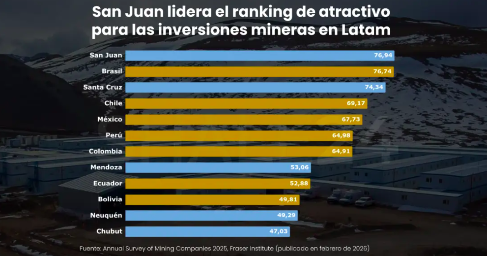 En la vereda opuesta, San Juan se consolidó como la jurisdicción más atractiva de América Latina, a pesar de una ligera caída en su puntaje global (pasando del puesto 14 al 18 a nivel mundial). Aunque los mineros locales expresaron preocupación por la aplicación de regulaciones y disputas territoriales, el potencial mineral de la provincia aumentó, destacándose la mejora en la base de datos geológicos y la disponibilidad de mano de obra calificada.